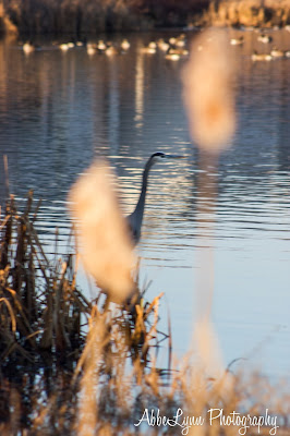 About 2.5 weeks ago I spotted a great blue heron walking through the pond during "golden hour". As it wasn't ridiculously cold that night (unlike right now!), I grabbed my 70-300mm telephoto lens and headed out to grab a few shots.