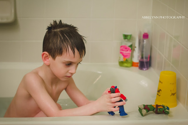 On some of the photography groups I'm in, I'll see people posting their examples of "Lifestyle photography". For those who don't know, this is basically capturing moments as they happen, in your house or whatever you're doing - not explicitly posing, but more trying for candids, etc. It's not a style of photography that I do a lot, but last month I wanted to give it a try. My kids were each enjoying a nice warm bath (separately!) mid-day, and so I gave them some toys to play with, grabbed my camera, and captured what I could. I think it was a good experiment; I can definitely use some improvement, but I love some of the moments that I captured of my kids, and that's what it's really all about.