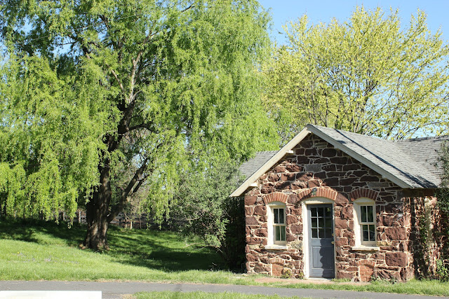 Continuing around the campus, I came across this small re-built building with willow tree. Doesn't it look like something out of a fairytale?!...excluding the paved path in front, that is.