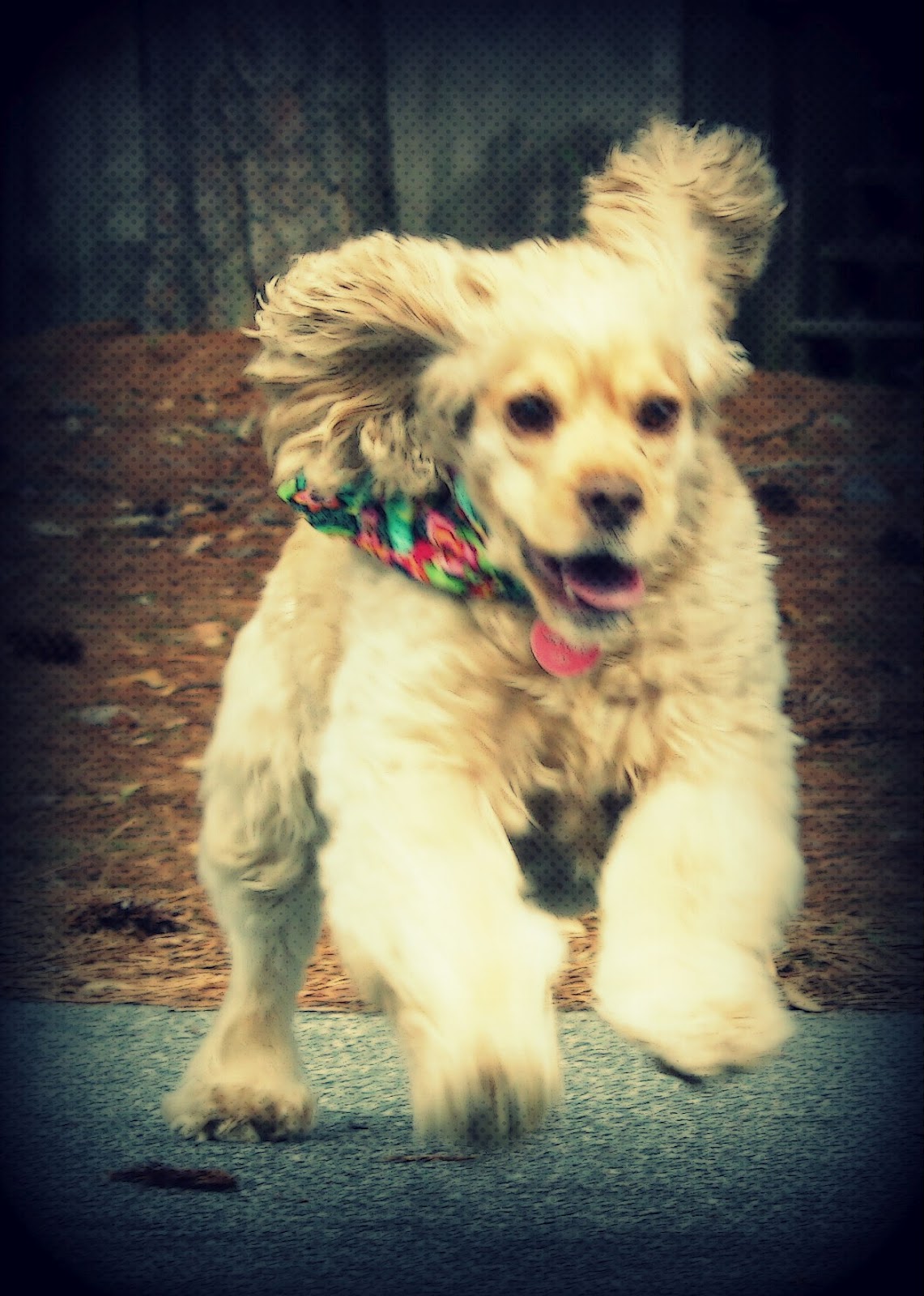 I took this shot of her running at my parents' house, and made a few edits to it (as you can see). Since she was running, the shot came out a bit blurry (I don't believe I was using the correct setting on my camera; I have since corrected that mistake in similar situations!). By editing it a bit, I managed to remove most of the blur and make a pretty great photo! I actually like the little bit of blurring that remains - it makes the action shot that much more powerful.