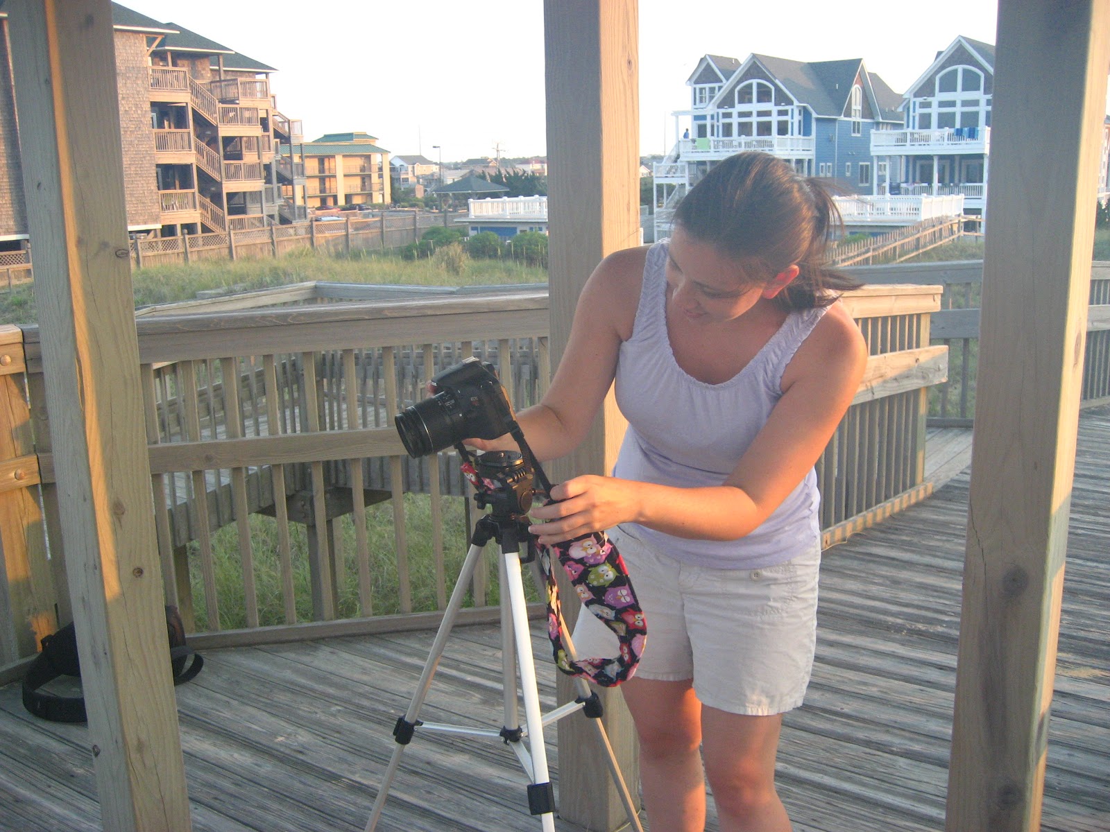 On our very last night in the Outer Banks last month, I wanted to head down to the beach after dinner and take some photos at sunset. However, upon our arrival at the beach access we were told by people leaving the beach that the flies were really bad, so we chose not to venture all the way down. Instead, we stopped at the gazebo at the top of the dune and took some photos from there.