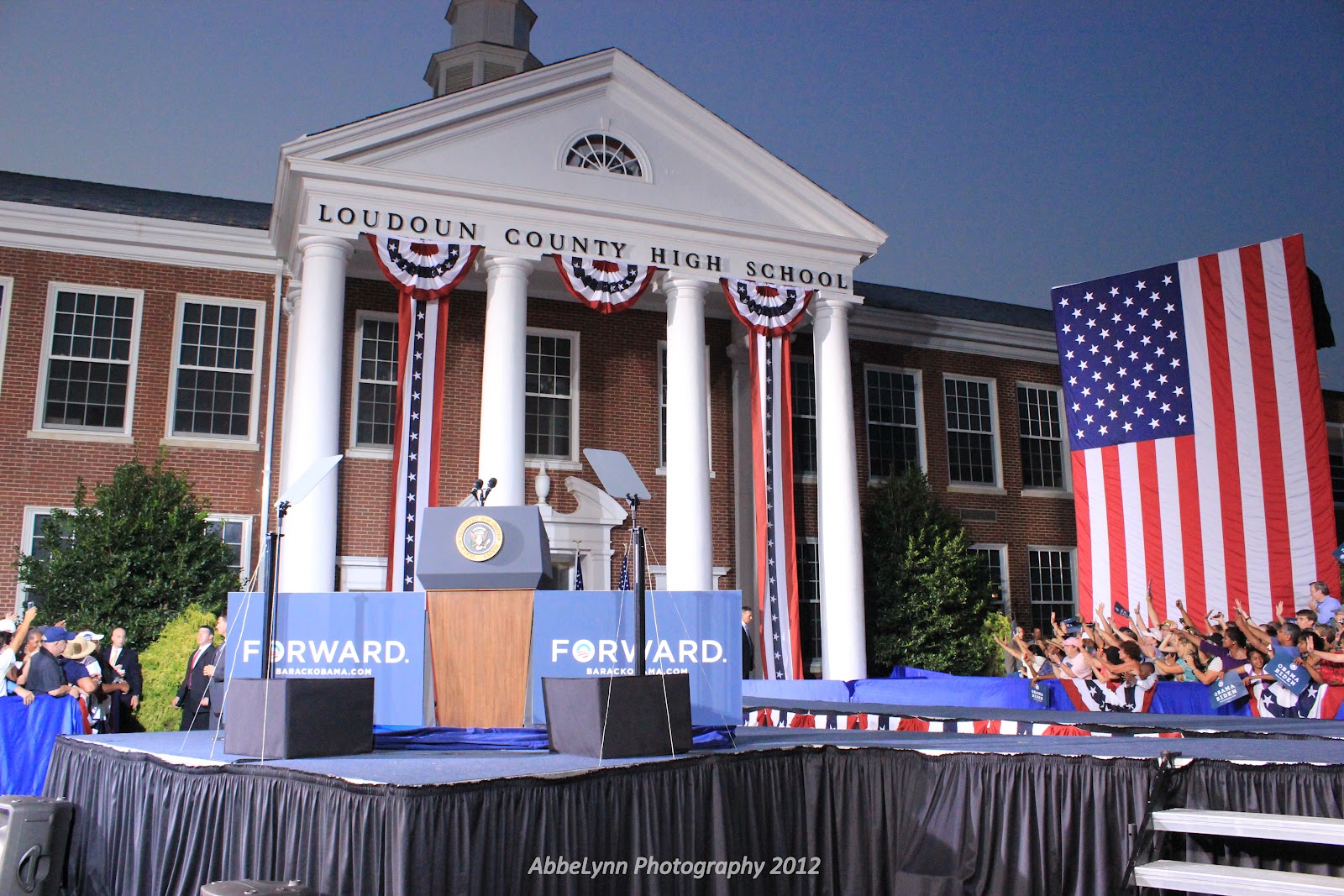 The speech took place in front of Loudoun County High School - it was pretty impressive how many people they crammed into such a small space! And it did make for a very nice backdrop (see the photo below as well).