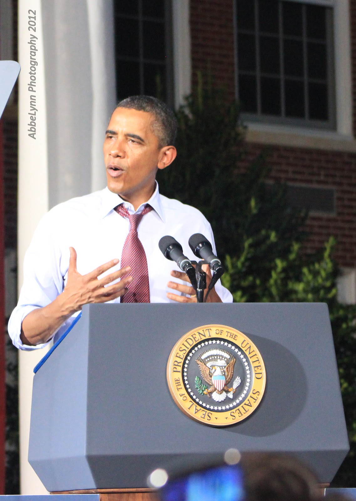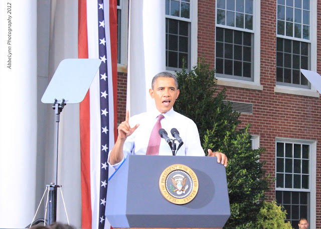 On August 2, 2012, President Obama came to Leesburg as part of his campaign speech tour. It was insanely hot, poorly organized, and we were outside for about 4 hours waiting for a 30 minute speech...but despite all of that I'm really glad that I went - the man can give a fantastic speech, and we're happy to help support him in whatever way we can.