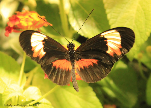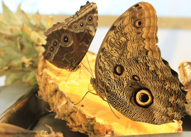 I had been wanting to take a walk through the Butterfly Pavilion on our last couple of trips there, but Evan isn't much for interacting with live animals and we would've all had to pay. It was definitely worth it! You walk through an air-lock to come in and out (to ensure there are no "riders" who come out with you!), and once inside you're just surrounded by butterflies everywhere! I took so many photos...here are my favorites.
