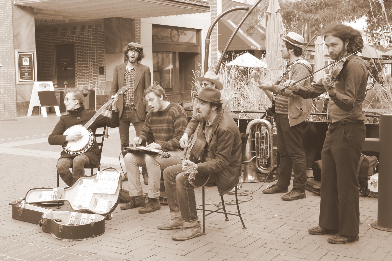 I saw this group performing - while they weren't fantastic (a bit Mumford & Sons-esque, but not as good), they were begging to be photographed in sepia. I'm really happy with how it came out!