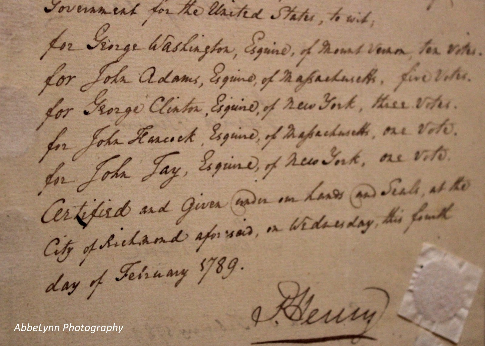 This first one is part of the decorative ceiling in the room.This was even better: the original document signed by the original Electoral College voters, which officially elected George Washington as our first president! Note that the votes were split between a number of people; he certainly did not get them all.
