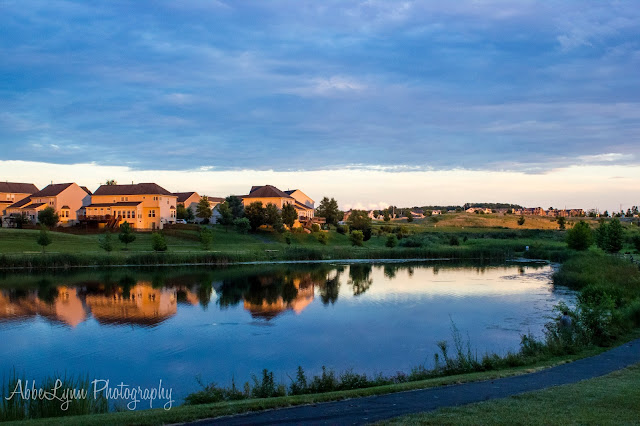 I discovered today that I purchased a piece of photography equipment and then promptly forgot about it: a polarizing filter that fits my 18-55mm and 70-300mm lenses. I can't believe I put this in my camera bag and then forgot about it! This filter is perfect for bright sunny days, as it eliminates quite a bit of the harsh sun's glare. It made for nice levels of brightness on photos I took today of our kids at the park (I definitely had much less post-editing to do than I would have otherwise on these photos!), and when I was struck by the beauty of our pond at sunset, I took these also using the filter, and again very little editing was needed in post. The colors just POP!