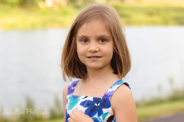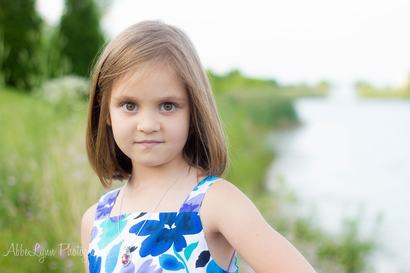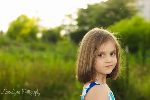 It's really wonderful that I have a daughter who loves having her picture taken, and isn't too bothered by posing for me now and again. I try not to only use her as a model (and I do have to remember that she's only 5, and her patience for me to try new things is limited), but every now and again she gives me priceless photos like these. She had her haircut last night, and I wanted to enjoy the beautiful light at sunset in July, so it was a perfect match.