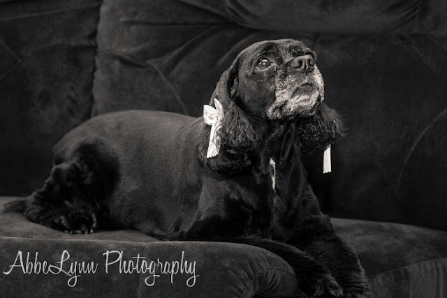 My dog is incredibly difficult to photograph - not because she won't hold still (she's actually quite good at posing), but because of her color. So much shiny black fur is very hard to capture well! She's very patient when I take the camera out in front of her, and I'm very happy with some earlier shots that I took of her lying in the sun. Once a month we get her groomed, and last month she came home looking absolutely adorable. I already had my light kit out for another job, so I was able to convince her to pose for me on our couch while I practiced taking her photo. The black on brown was maybe not ideal, but I think I managed to get a decent separation of her from the background.