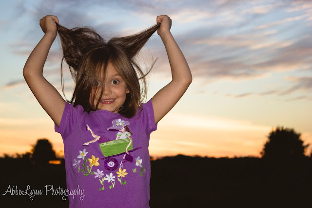 In my previous post, I shared my favorite photos from a recent sunset excursion in our neighborhood. When we were "done", my daughter asked if I would take a few of her in front of the sunset. I of course said yes, as I love photographing her...it also gave me the chance to use my remote flash to highlight her and the sunset at the same time!