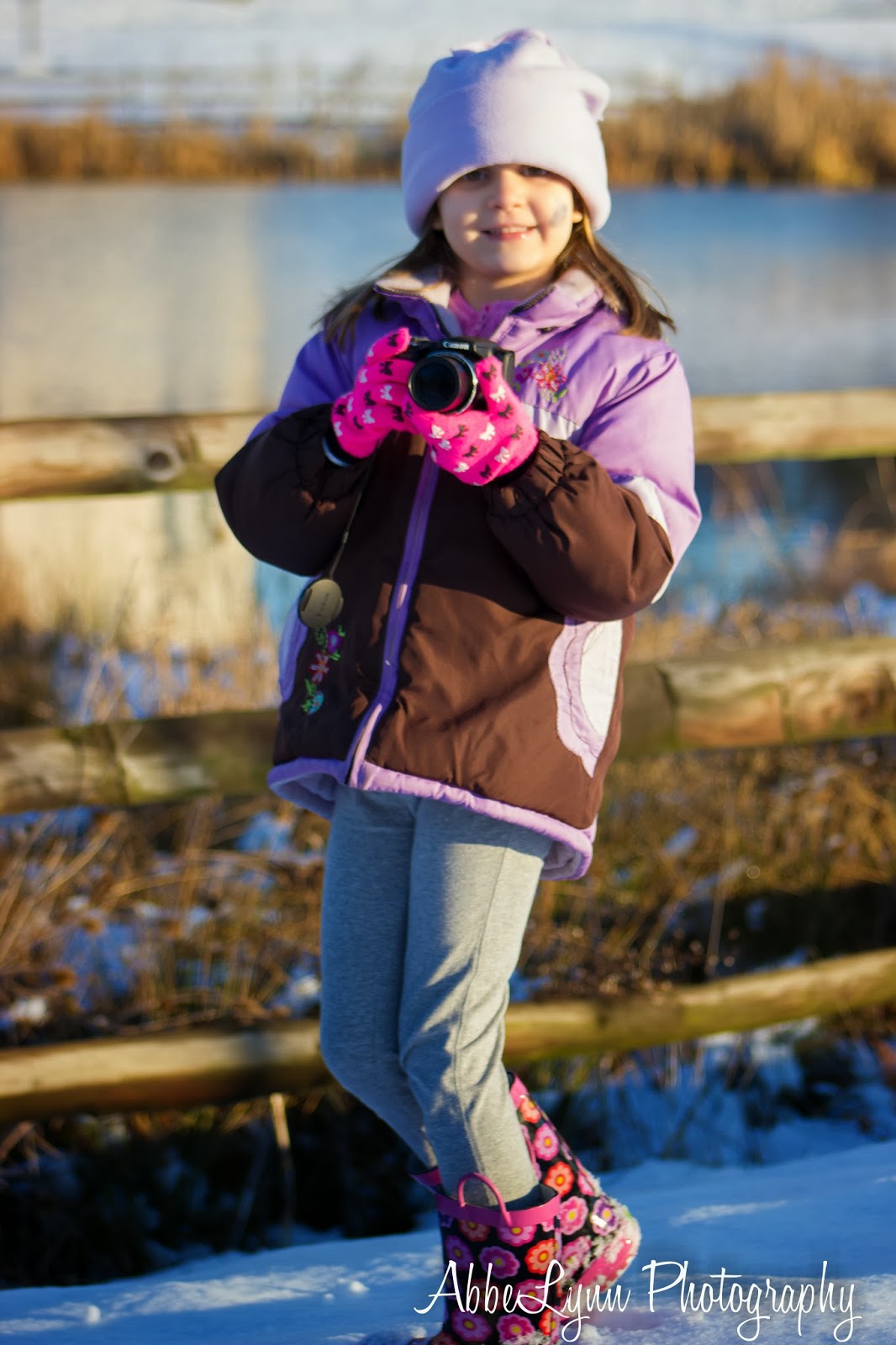 Two weeks ago today was my daughter's birthday. We woke up to gray skies and heavy snow falling, but were able to go outside twice that day despite the weather! Later in the afternoon, when the sun came out, I headed outside to take photos. She wanted to take photos with me, so of course I took the chance to grab some unique photos of the birthday girl in the snow. It doesn't hurt that they are also photos of her being a photographer!