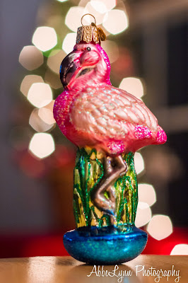 And this one was just for fun: a friend gave this ornament to me this year (why the pink flamingo is a long story). Wonderfully tacky, and the bright colors make for a great subject, especially when lit by the white lights.
