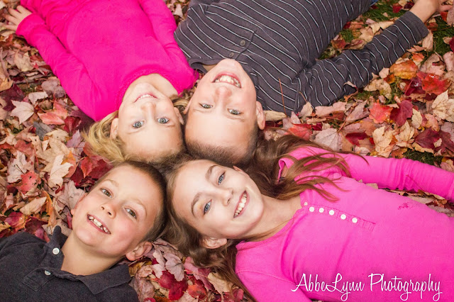 Then, just a couple of weeks later, I was finally able to schedule with another local mom. Her youngest daughter and mine went to preschool together, and we'd been trying to schedule for a bit. But with 4 kids, her husband's schedule, and my travel schedule, we weren't able to get together until mid-November. Sadly, we didn't have the nice warm light that I had at the previous shoot, but we did have 4 fun kids and some lovely autumn foliage, which still led to some great shots!