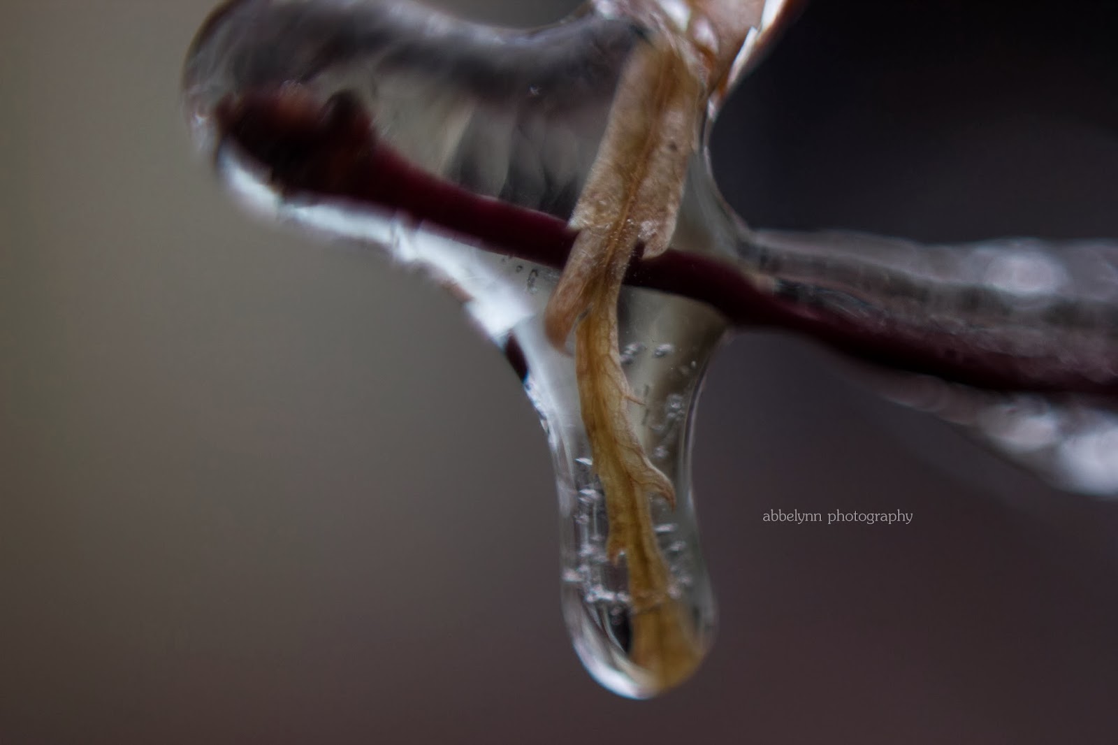 I then flipped around my lens to take a few very close-up macro shots of the branches/leaves encased in ice. This first one is my favorite!
