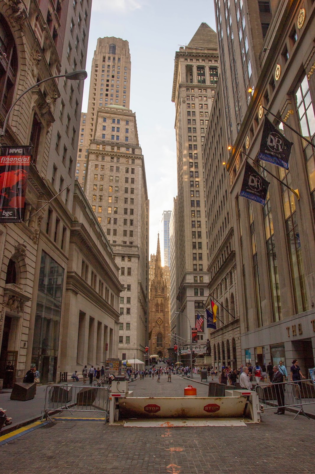 Standing in front of my old building, looking up towards the stock exchange, you can see Trinity Church framed perfectly at the end of Wall Street.
