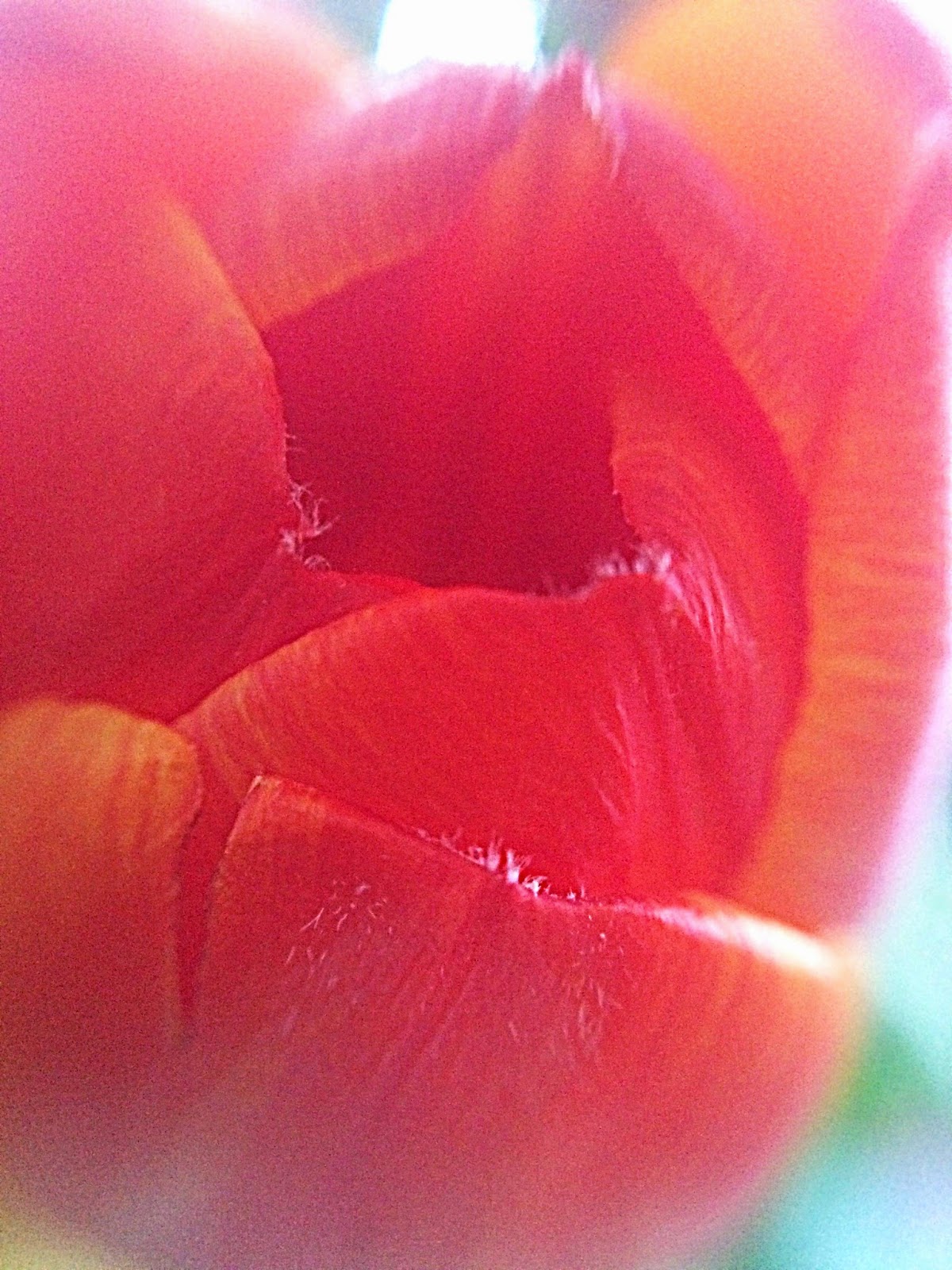 For the Weekly Photo Project this week, the theme is "A Bug's Eye View". Today my husband very nicely purchased tulips for my daughter and I, so I thought: where would an insect me attracted to, but the flowers? So I added the macro lens to my iPhone camera, and with a small amount of editing afterwards, this is what I have!
