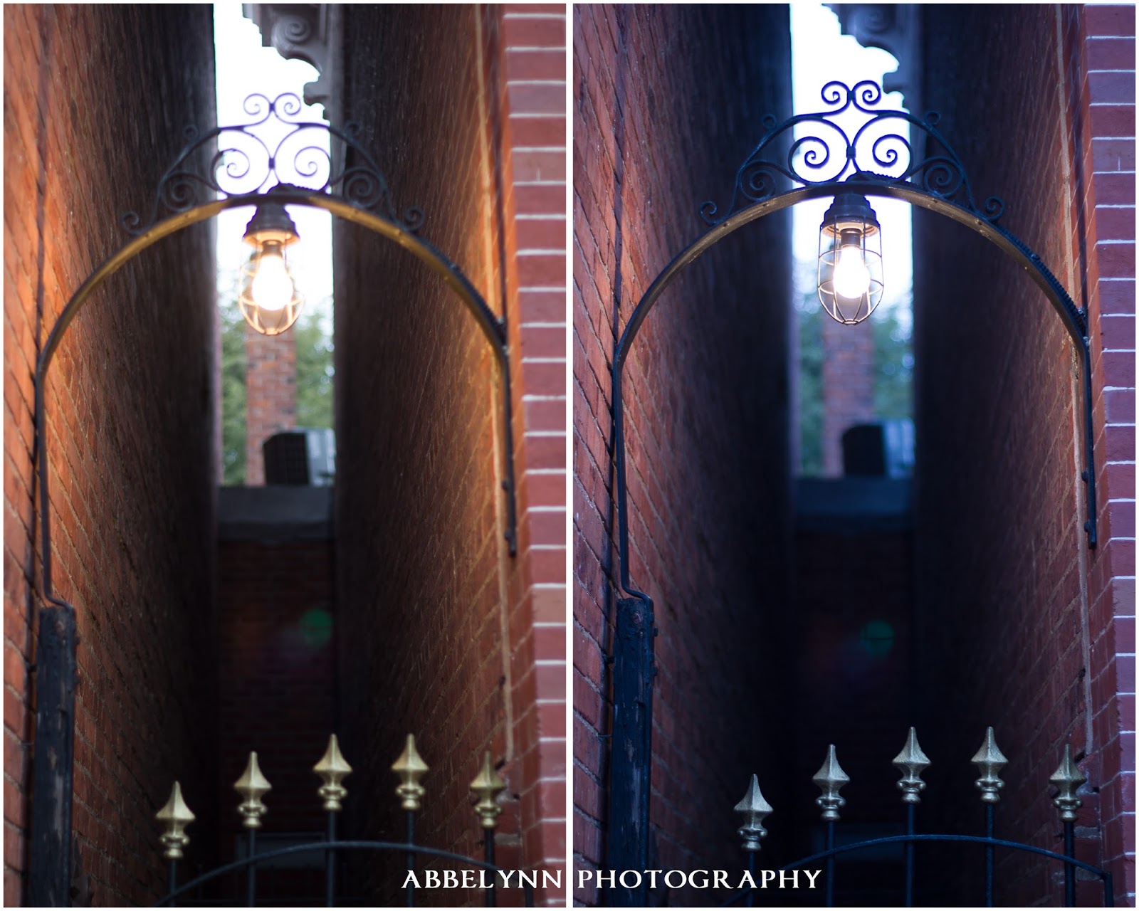 As anyone with a craft/passion should do, it's important to periodically take classes to improve one's skills in that area. I really enjoy taking photography lessons, whether it be informally with fellow photographers, sharing tips, or in a class that I have paid for. While a lot of my lessons recently have focused on photographing people, which is really what I've focused on, I have taken other lessons in other areas. A while back, I took a class in Washington, DC where we walked through Georgetown at dusk. The class focused primarily on how to adjust things like white balance in camera, not in post editing, to get different "emotions" in the photos, as well as some tricks for evening/low light photography. It was definitely fun to work on adjusting the mood of the photo while shooting, instead of during editing as I usually do! For all of the comparison shots below, I did not do any editing in post; it was all done on camera.