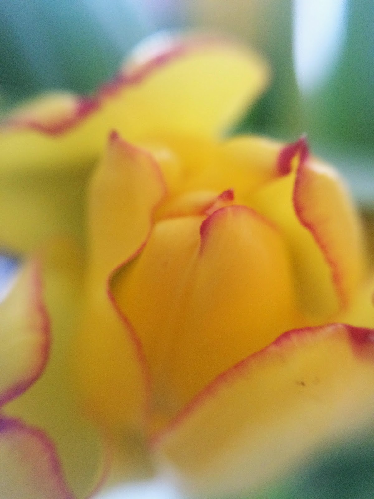 For the Weekly Photo Project this week, the theme is "A Bug's Eye View". Today my husband very nicely purchased tulips for my daughter and I, so I thought: where would an insect me attracted to, but the flowers? So I added the macro lens to my iPhone camera, and with a small amount of editing afterwards, this is what I have!