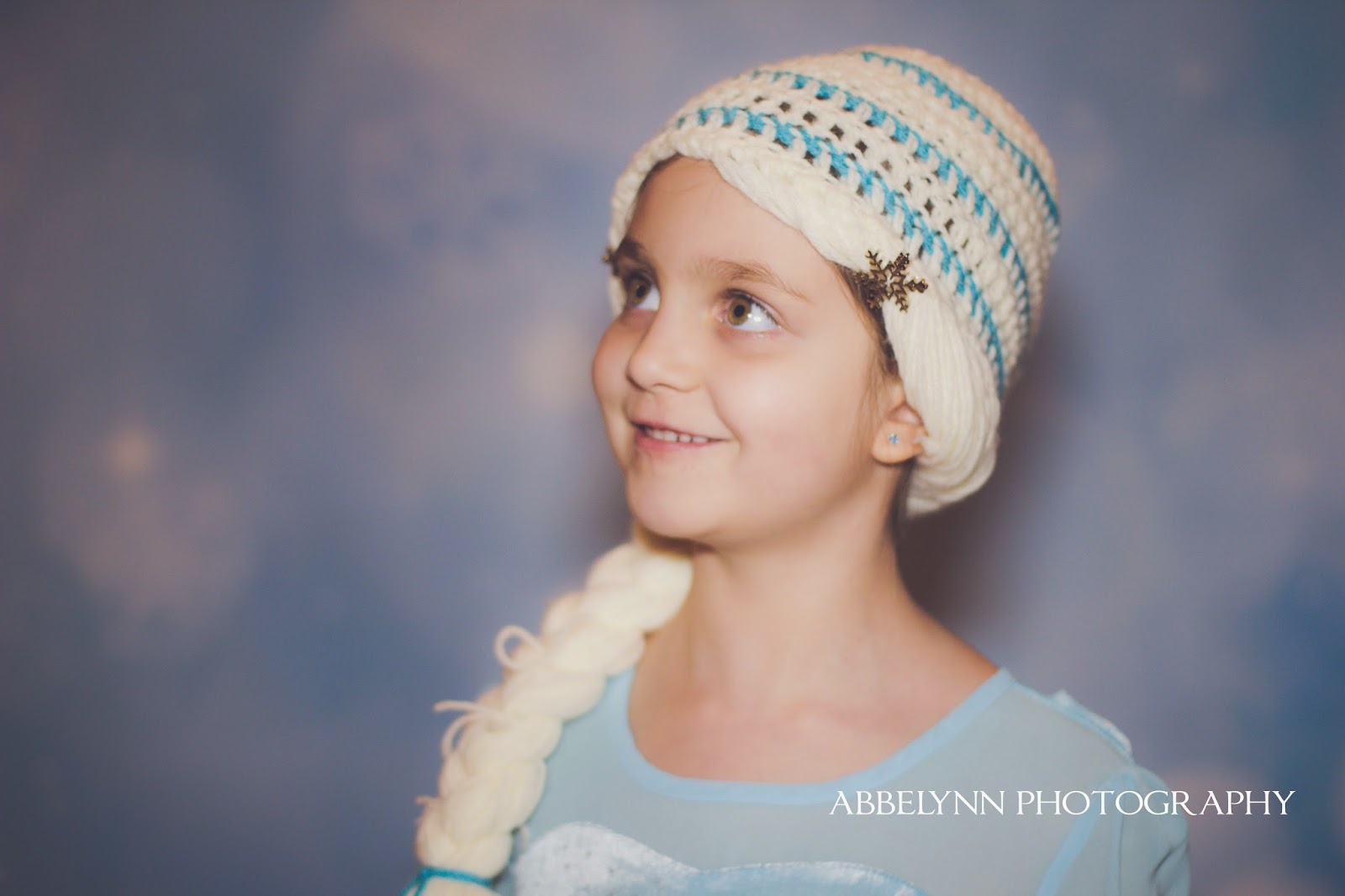 One cold, dreary weekend in January I set up my new backdrop and let my daughter wear her new Elsa hat (with braid), along with her Elsa dress. The result: a Frozen-inspired photo shoot of my beautiful girl! Not on that, but it was an excuse to play with my two prime lenses (50mm f/1.4, and 85mm f/1.8). This photo in particular was my favorite.